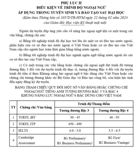 ĐIỀU KIỆN NGOẠI NGỮ ÁP DỤNG TRONG TUYỂN SINH VÀ ĐÀO TẠO SAU ĐẠI HỌC 2024