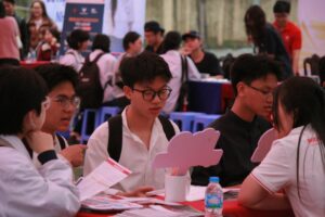 Tại gian tư vấn, nhiều phụ huynh và học sinh đã trực tiếp trao đổi với đại diện Học viện về chương trình học gắn với thực tiễn, môi trường đào tạo kỷ luật – chuyên sâu, cũng như lộ trình phát triển nghề nghiệp lâu dài. Các thắc mắc liên quan đến nội dung đào tạo, kỹ năng cần thiết và cơ hội việc làm sau khi ra trường đều được giải đáp cụ thể, minh bạch.